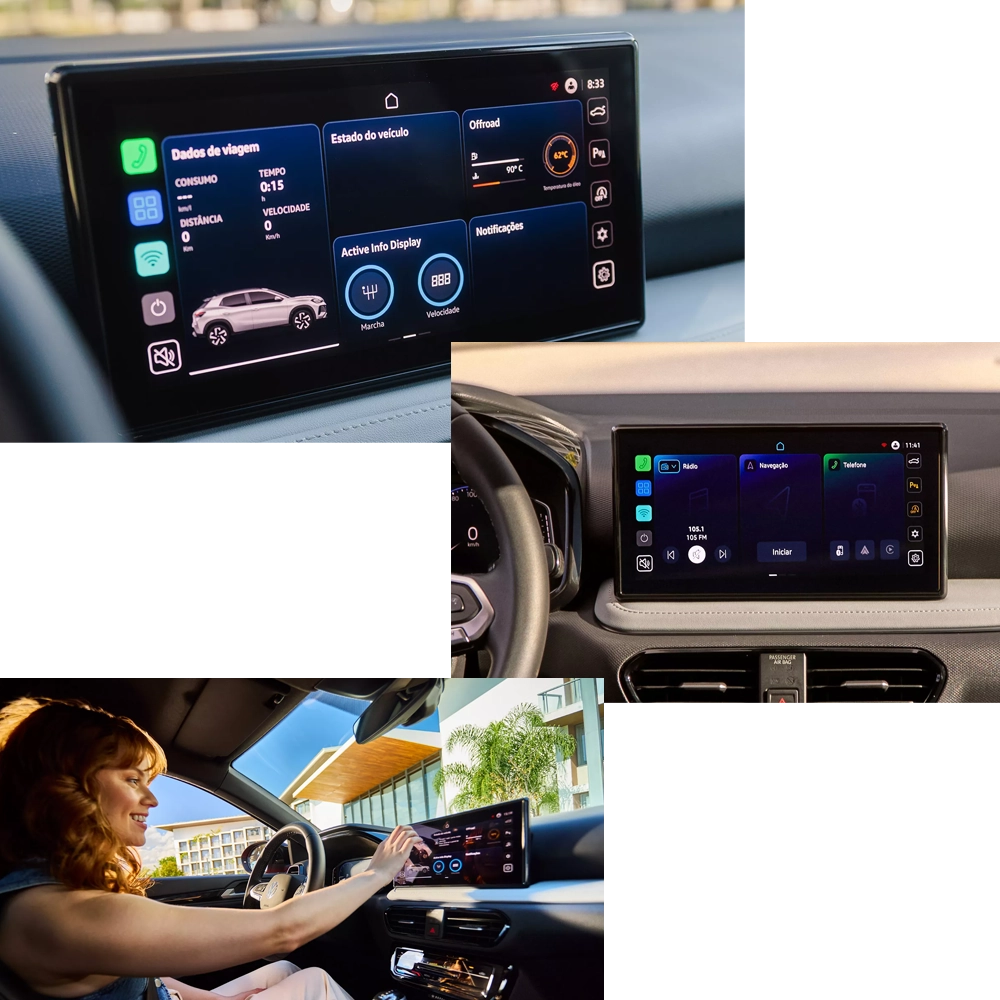 Os elementos visuais reforçam a modernidade do design e criam uma conexão especial entre você e seu novo SUV, transformando cada descoberta em uma experiência memorável.